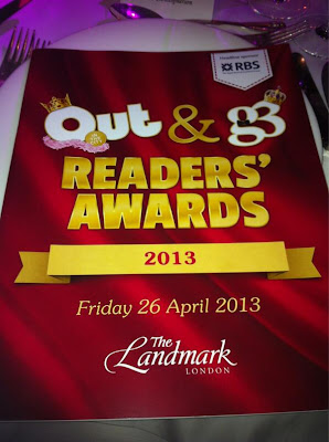 Last evening, Charlie Condou was the co-host of the Out In The City Magazine's Readers' Awards held at The Landmark, London. As you can see from the invite it kinda looks like an invitation to a Saint and Sinner's Ball...Charlie is the saint obviously!